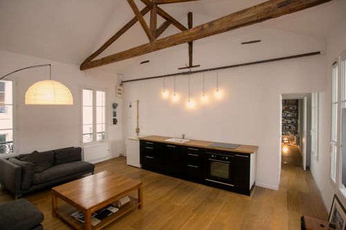 Overall, this Parisian living room offers a modern and minimalist design with an industrial touch. It is a cozy and inviting space that is perfect for relaxation and entertaining guests.